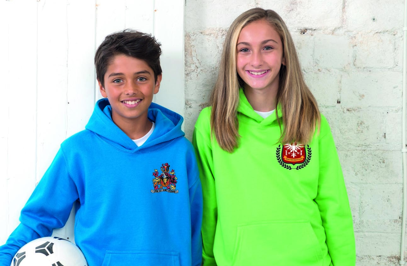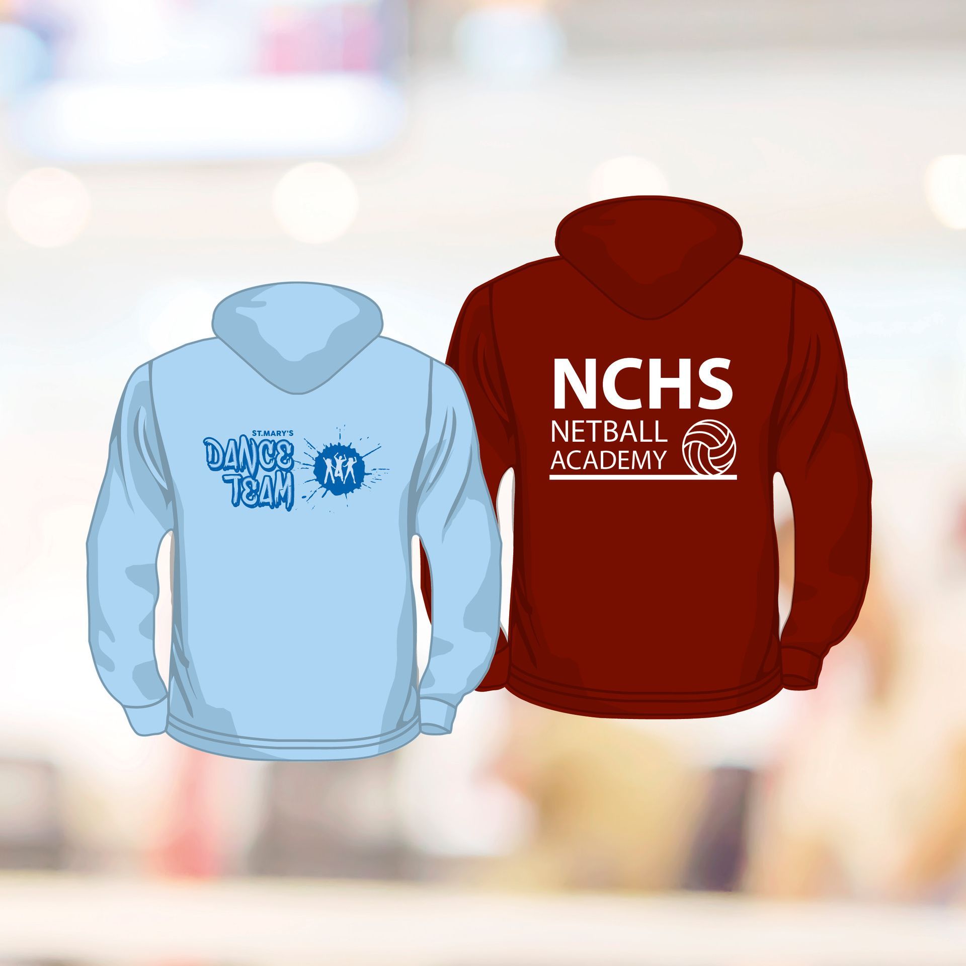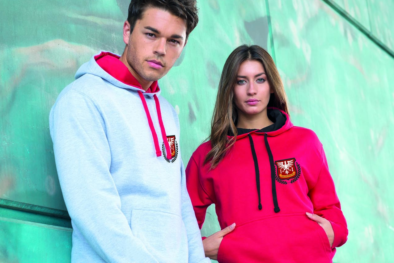 We also offer two great styles of hoodies - one colour original or contrasting colour varsity.