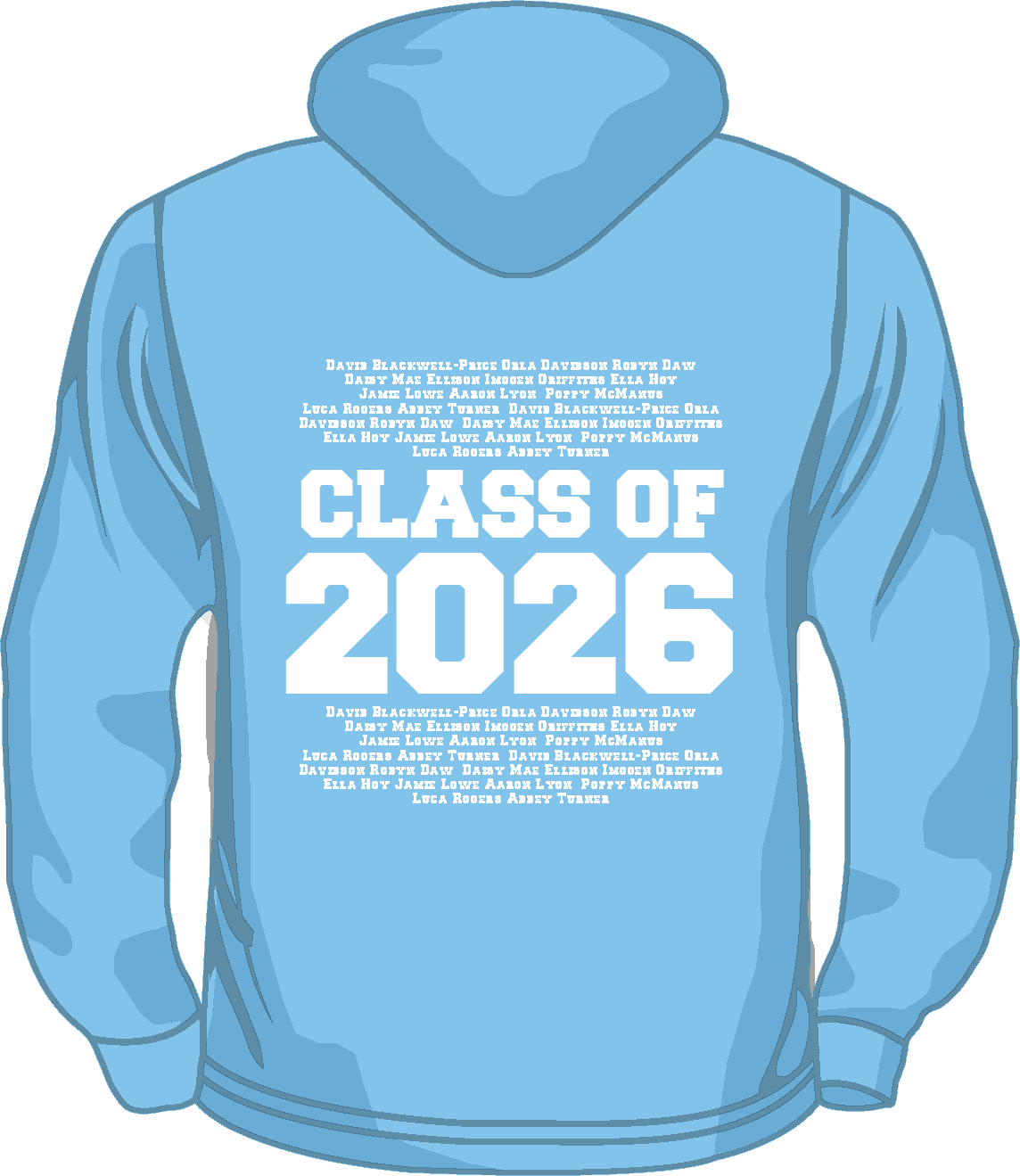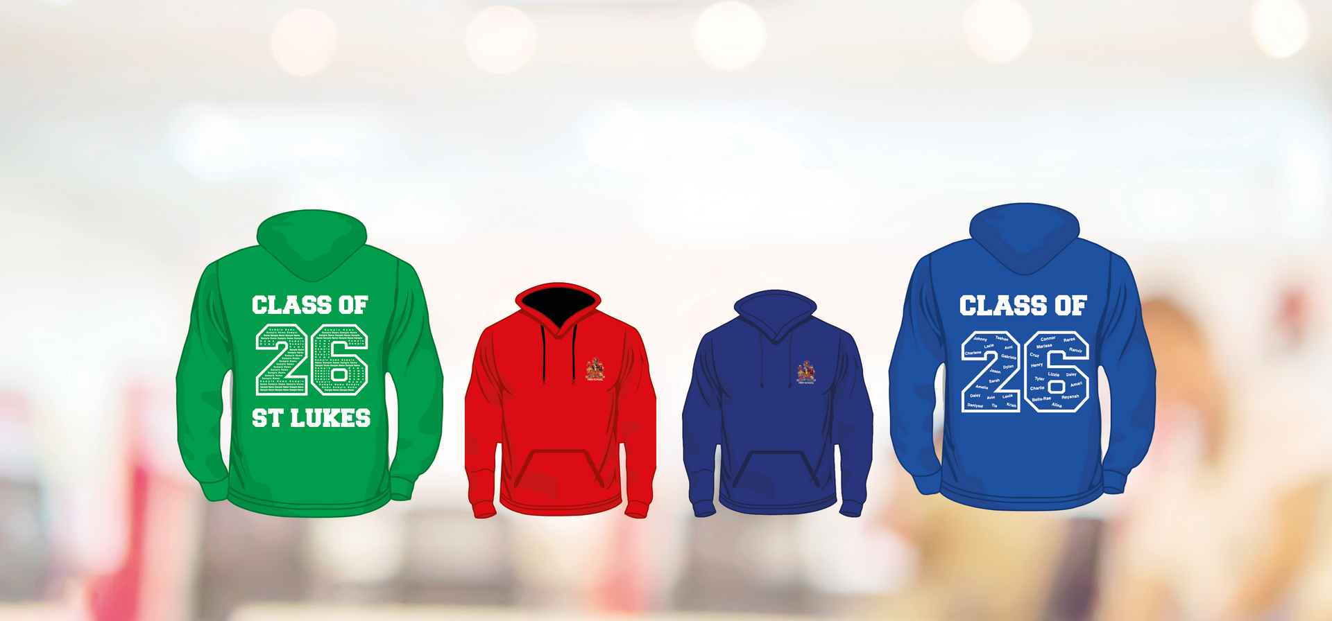 - Don’t forget that hoodies don’t just have to be for leavers – our ‘Class of’ hoodies can be bought in the autumn and used all year!