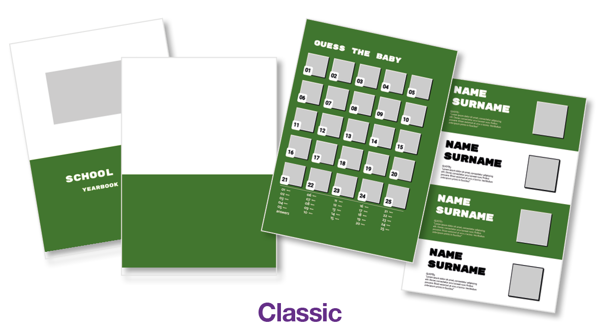 Below is just a selection of the many great designs available - you can stick to one style, mix and match from a few or create from scratch - it's up to you! Click here to start a new Hardback Yearbook project or have a look at the online yearbook builder or here to log in to an existing project.