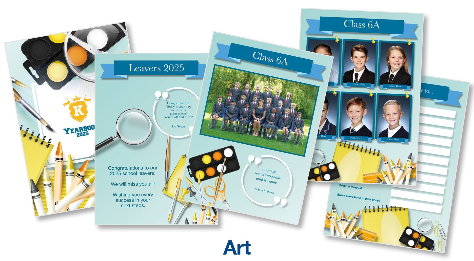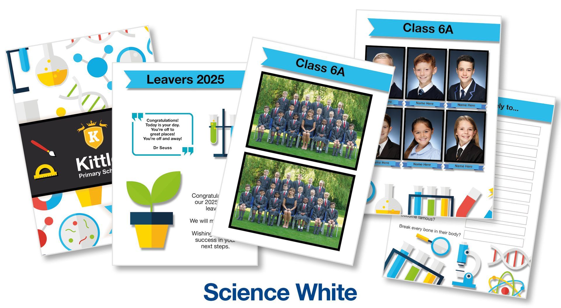 All we need from you is your school logo and leavers class list in the order you would like pupils in the yearbook, with class names, and we will create the yearbook using your most recent Kittle class and individual photos.